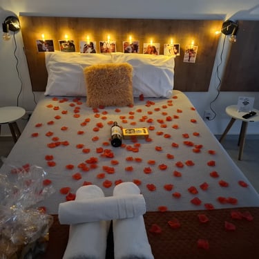 Possuímos 2 tipos de suítes, a suíte com banheira individual para casal, e a suíte para casal com banheira dupla.