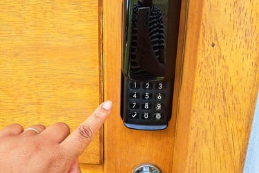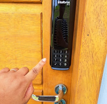 Todas suítes possuem fechadura eletrônica com senhas distintas. video_fechadura